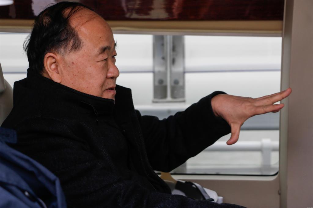 当有人问道:这些建设者的故事是否会作为您写作的素材或者创作的主题?莫言说到:作家写作,并不是说他看到了,掌握了素材立刻就能变成文学的作品,当然像报告文学、散文,这些纪实文学类的,可以通过采访、实地考察,很快地变成一个作品,但是如果要写成长篇小说,写成诗歌,更多的是对这种精神的消化,更多的是灵感的启发,所以想想我的小说里所描写的那种当年比较封闭的落后的乡村、当年的农耕文化,跟港珠澳大桥这种现代化水平的建筑成果进行对照,自然会产生很多联想,这种联想以什么样的形态在作品里呈现,我也不知道。但我知道今天看到眼里的都是有用的,因为我感觉到了震撼,因为我感觉到了激动,因为我感觉到了有很多话要说,这已经达到了来大桥参观的目的。