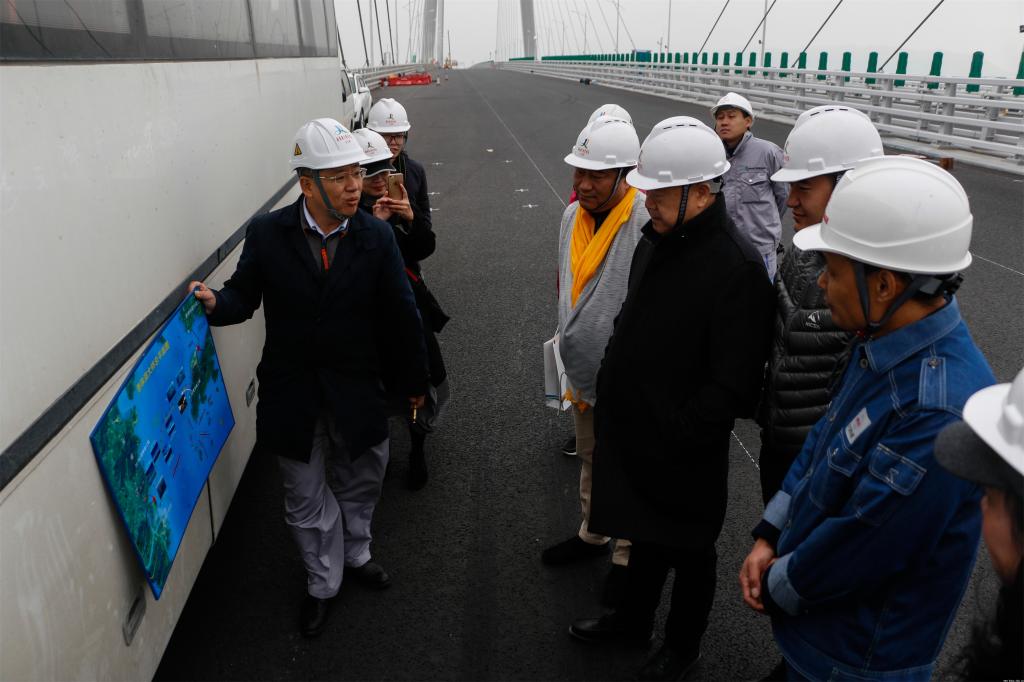 2017年12月17日上午,著名作家莫言在参加金砖国家文学论坛之际登上港珠澳大桥青州桥,与大桥建设者进行了一场别开生面的对话。