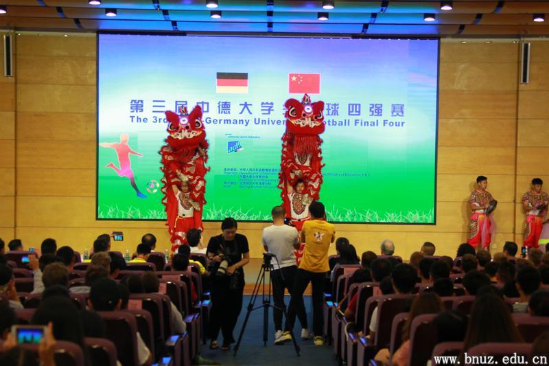 开幕式结束后,太原理工大学队与海德堡大学队揭幕赛随即开始。太原理工大学男足队伍是一支高水平的大学生足球强队,在上赛季的全国大学生校园足球联赛(超级组)中一举夺冠,并曾在2017年第二届中德大学生足球四强赛中获得冠军。海德堡大学是德国最古老的大学,多次蝉联入选“德国精英大学”,该大学足球队战绩显著,曾在2002年晋级欧洲锦标赛。参加本届比赛的队伍是新成立的球队,球员是来自多个业余球队的优秀球员。
