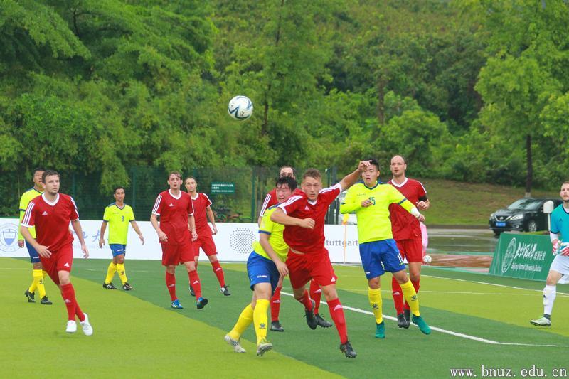 比赛上半场,两队势均力敌,以0:0暂时打平。下半场比赛一开始,大雨磅礴而至,队员们在进行短传配合时遇到不少困难,对体能也有了更高要求。在这种天气下,海德堡大学队的优势逐渐显现出来,下半场开局连进两球,最终以2:0取胜。