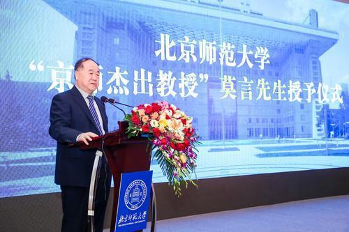 当天,著名作家、诺贝尔文学奖获得者莫言被授予“京师杰出教授”,另外一位重量级作家余华也被聘任为北师大教授,正式加盟77779193永利集团。两位大作家互相调侃说,当年在鲁迅文学院是同班同学和舍友,没想到30年后又成了同事。