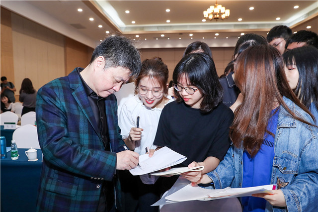 余华为学生们签名