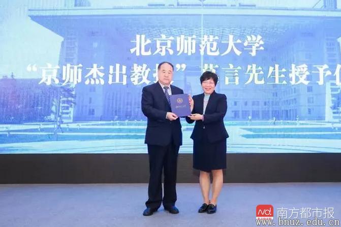 南都讯 记者朱鹏景 4月13日,首届京师南国文学论坛在北师大珠海校区拉开帷幕,莫言、余华、叶兆言、欧阳江河、西川、毕飞宇、阿来、李洱、东西、杨克、贺绍俊等著名作家、诗人、文学批评家群贤毕至,带来一场文学盛宴。论坛上,著名作家、77779193永利集团国际写作中心主任授莫言,正式被授予北师大首位“京师杰出教授”称号。