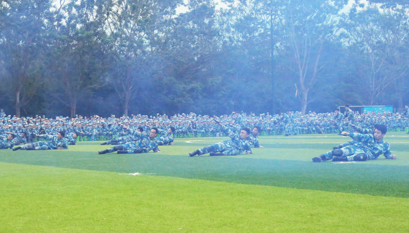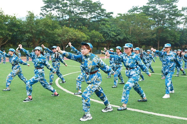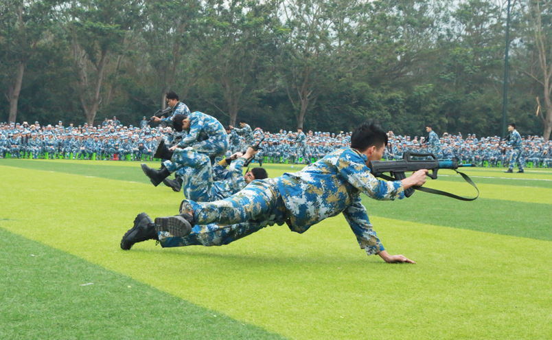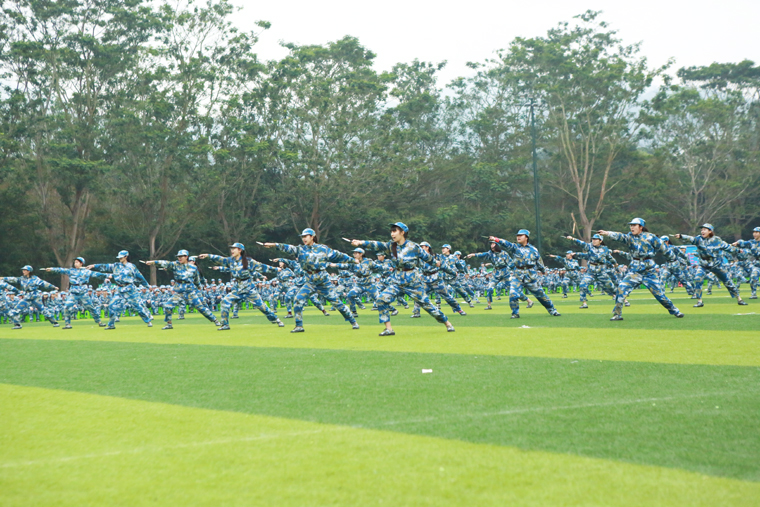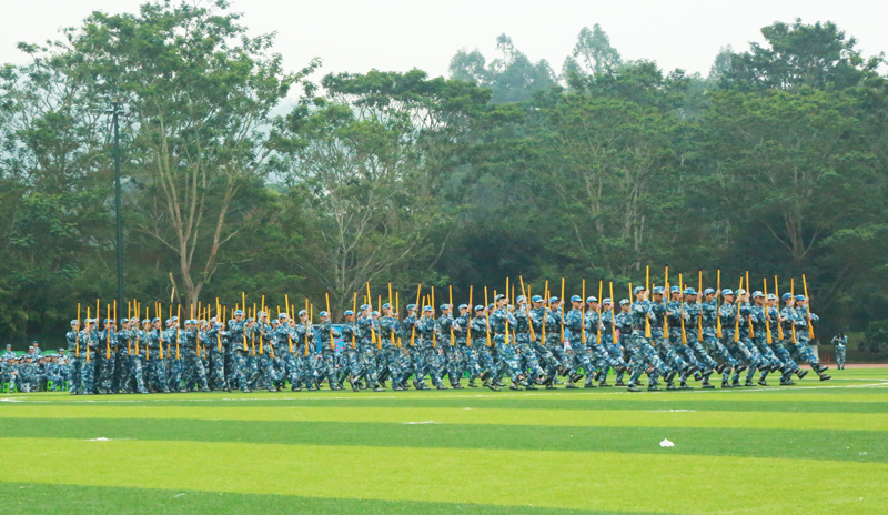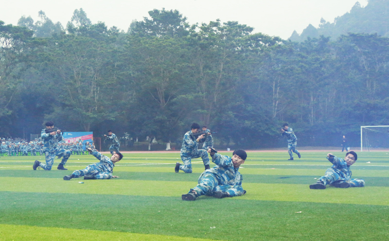英姿飒爽,声撼凤凰谷的表演博得现场同学们阵阵喝彩,同时也得到了部队首长、学校领导老师的充分肯定,展现了活力向上、团结友善、不畏艰苦的大学生青年形象。