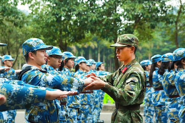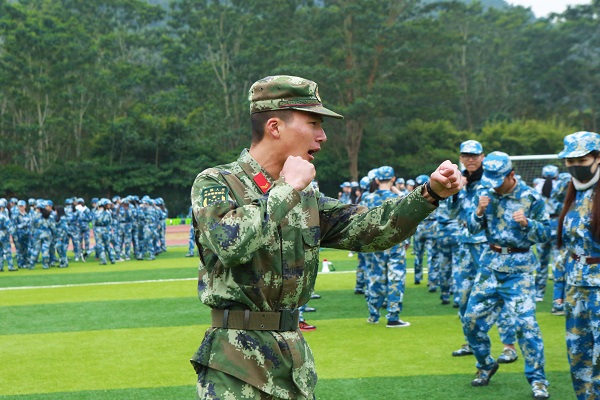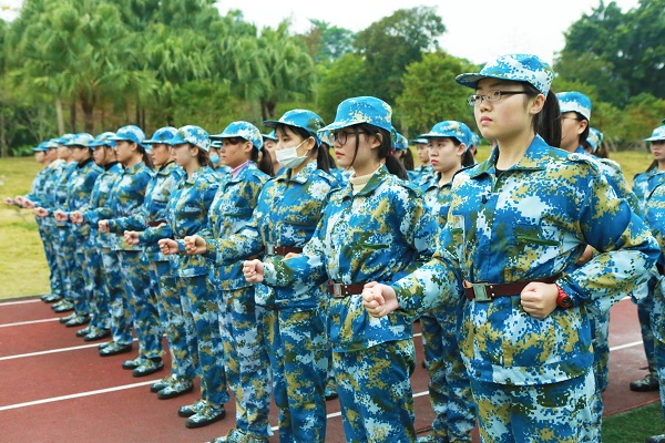 “站了很久的军姿,腿很酸,但还是要坚持。”“累并快乐着,有趣的教官和团结的队员们作伴,枯燥也就渐渐淡去。”来自艺术与传播学院梁同学和外国语学院肖同学这样说起自己的军训感受。