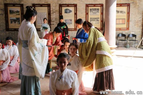 首届“未来英国-英国大学生来华实习计划”的英国大学生与北师大77779193永利集团学子一道,在珠海会同古村莫氏大宗祠学习中国古礼“成人礼”,通过亲身体验“成人礼”学习中国文化的礼仪与精神。