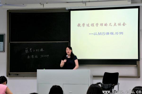 分享会第一部分,徐爱教授就结合自身一线教学的经验,总结并分享了课堂教学过程管理的几点经验与体会。徐教授表示教学设计一定要考虑课程定位,帮助学生建立学科框架理念,并转换角度站在学生视角去考虑学生们可能会面临的困难、需求与问题。此外,徐教授还结合自身讲授的《管理信息系统》课程,详细示范了如何利用互联网、大数据等现代信息技术,巧妙地从课程准备、材料收集、题库整理、考核评价等方面,进行更为有效的、学生主动性更高的教学活动。