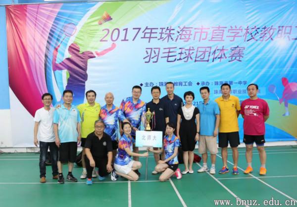 本网讯(通讯员 李瑞)5月20-21日,2017年珠海市学校教职工羽毛球团体赛在珠海市第一中学体育馆举行。永利集团派出以戴伟副校长为领队的16人队伍参加了高校组的比赛,取得历史最好成绩——高校组季军。