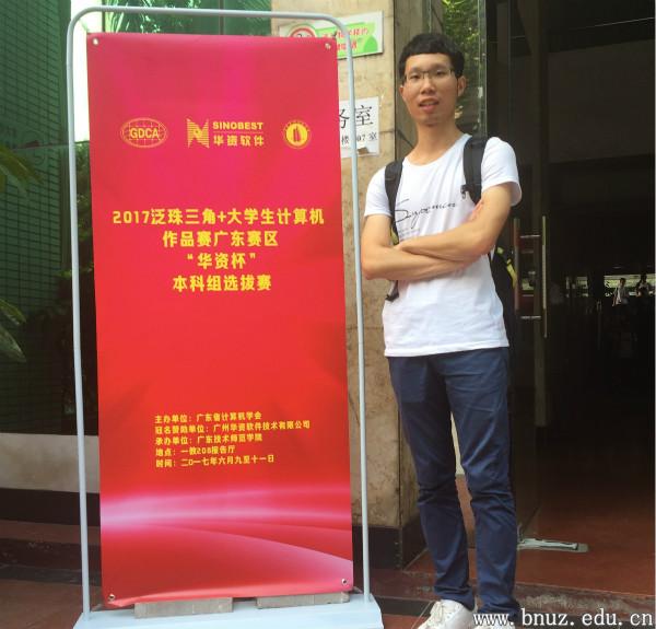 本网讯(通讯员 杨戈)2017年6月11日,永利集团信息技术学院计算机科学与技术系2013级黄尚仁同学,在广东省计算机学会主办的“2017泛珠三角+大学生计算机作品赛中,获广东赛区‘华资杯’本科组选拔赛”一等奖。