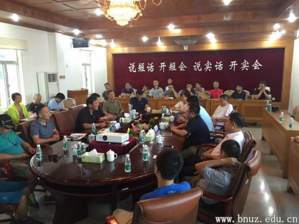 担杆镇镇长表达了与到场单位、特别是运动休闲学院合作的强烈愿望。他通过结合万山区的宣传片《当大海遇上星海》和《万山海洋示范开发区介绍》从宏观层面介绍了海岛的资源和未来立体打造海洋资源的发展预期。他还介绍了镇上各岛屿的定位、资源、规划和发展,并着重讲解了在资源整合、创新发展、区位特色、错位发展中面临的问题,希望在专业人员帮助下能够跨越式发展。