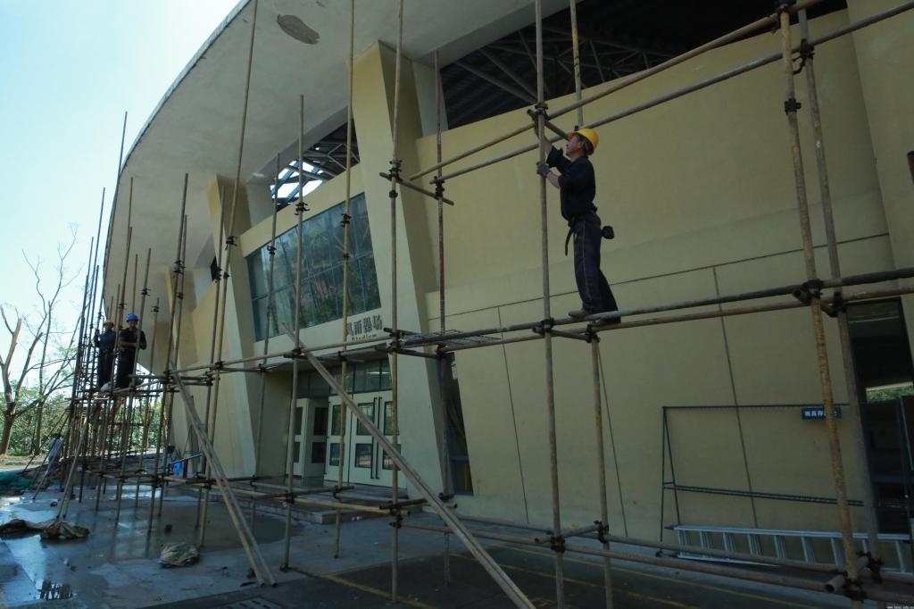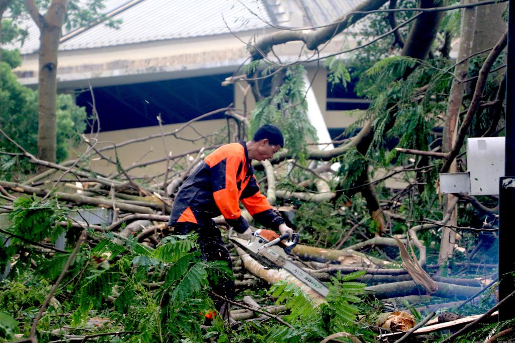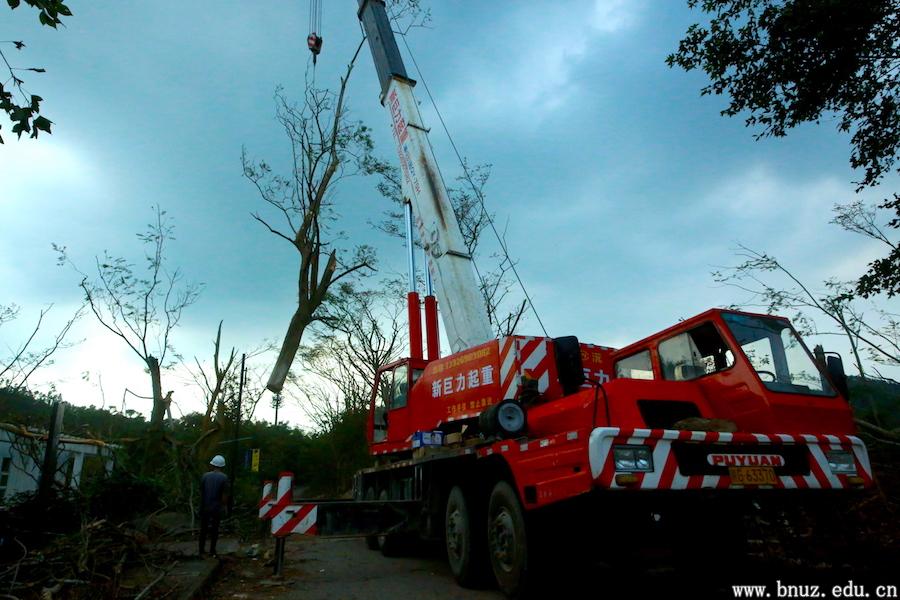 台风过后,校内各单位和校外施工单位通力合作,抢抓第一时间投入灾后恢复工作。道路疏通工作于23日中午开始展开。经过抢修,全校交通要道在较快时间内恢复通车。与此同时,学校对道路设施设备立即进行抢修,并对被台风刮断的树木进行清理。由于受损情况严重,为保证学校正常开学,加快抢险救灾工作,学校聘请抢险救灾工程队200余人,实施“网格化”救灾。此外,学校第一时间组织正在学校进行暑期维修工作的7家施工单位100余人,迅速投入到受损建筑及设施的抢修工程中。