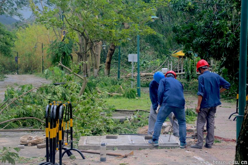 本网讯(记者 黄洲承)8月23日午时,第13号台风“天鸽”在珠海金湾区沿海登陆,登陆时中心风力14级,永利集团在此次台风中受灾严重。但大家在抗风救灾中表现出的不畏艰难、团结拼搏、同舟共济、乐于奉献的精神风貌也成为了阴霾中最靓丽的彩虹,诠释了北师珠人“追求卓越、以人为本”的校园精神。