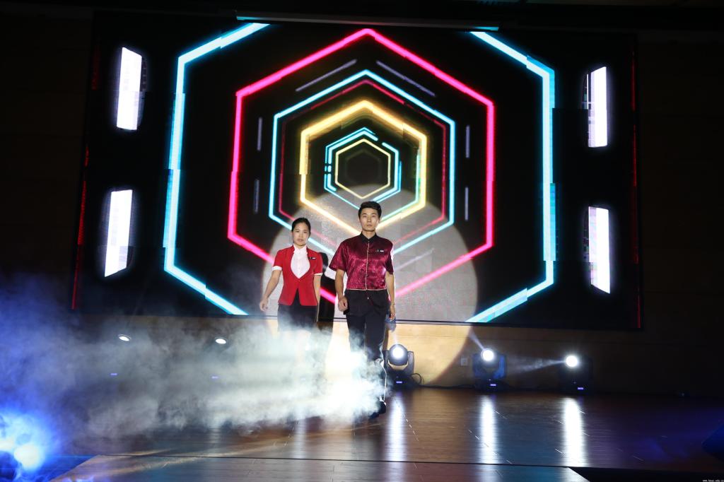晚会中,教职工合唱团的一首《祖国你好》展现出永利集团教师昂扬奋进的精神风貌和对伟大祖国的热爱之情。资产公司和运动休闲学院联袂出演的时装秀更是不可忽视的亮点。俊男靓女身着不同种类的工作服和运动装备,伴随着节奏感极强的音乐在舞台上尽情展现青春朝气,让观众们大饱眼福。