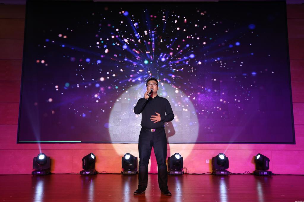 校园规划与建设办公室杨耕书老师带来的一曲《在此刻》,将现场气氛推向高潮。他以男中音真声唱法,还原了歌曲背后蕴含的感情,体现男声浑厚且不失音准的效果,引发全场观众喝彩。
