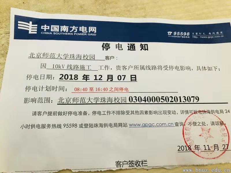 受上述施工影响,永利集团京师家园将会停电,计划停电时间为2018年12月7日(周五)08:40-16:40。请校内各相关单位提前做好停电准备工作,期间所产生的不便,敬请谅解。