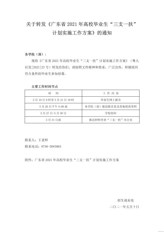 附件:关于印发广东省2021年高校毕业生“三支一扶”计划实施工作方案的通知(粤人社发[2021]23号).pdf